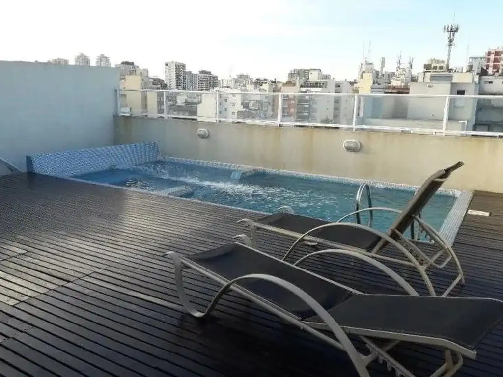 Departamento de 2 ambientes, al contrafrente. 6º piso. Superficie total de 52m², cubierta de 45m² y descubierta de 7m². Un dormitorio, dos baños (uno completo y un toilette). Living-comedor, cocina integrada. Baulera. Balcón con lavadero. Calefacción por piso radiante con caldera dual individual. Aire acondicionado en dormitorio y living. Excelente estado, muy luminoso. Pisos de madera.