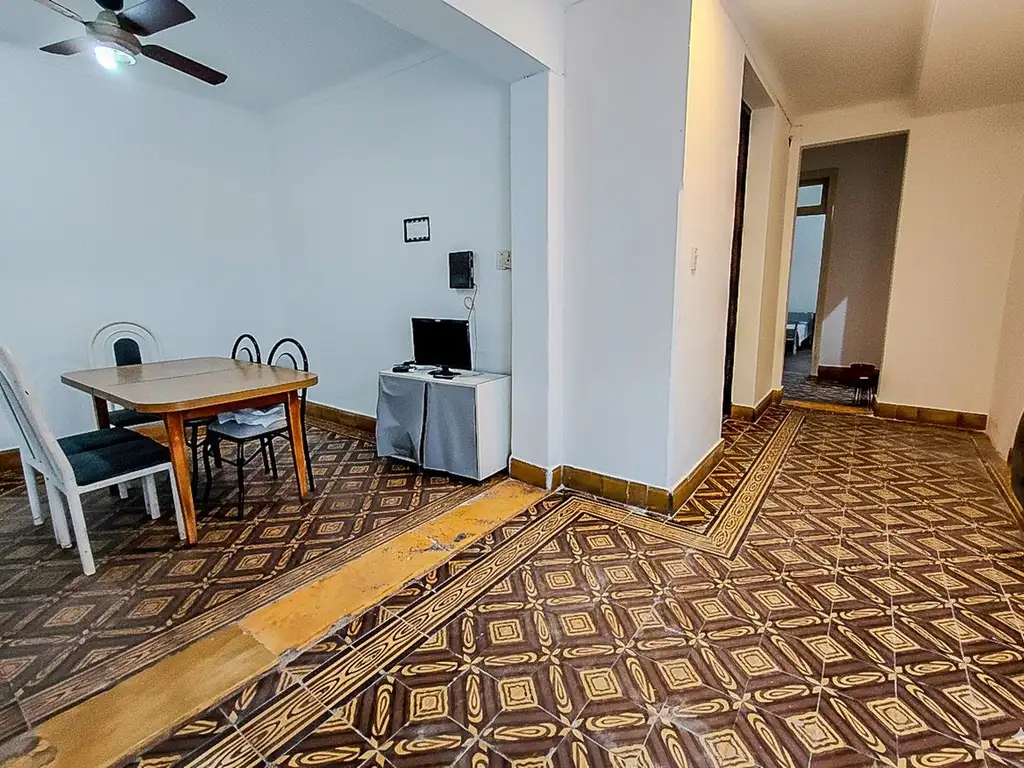 La propiedad cuenta con sala de estar en el ingreso, 2 dormitorios super amplios, uno de ellos es ciego pero con dos accesos, un pasillo distribuidor que conduce a baño completo el cual esta reciclado a nuevo, luego comedor y aparte la cocina con detalles a refaccionar, y por último el patio.
