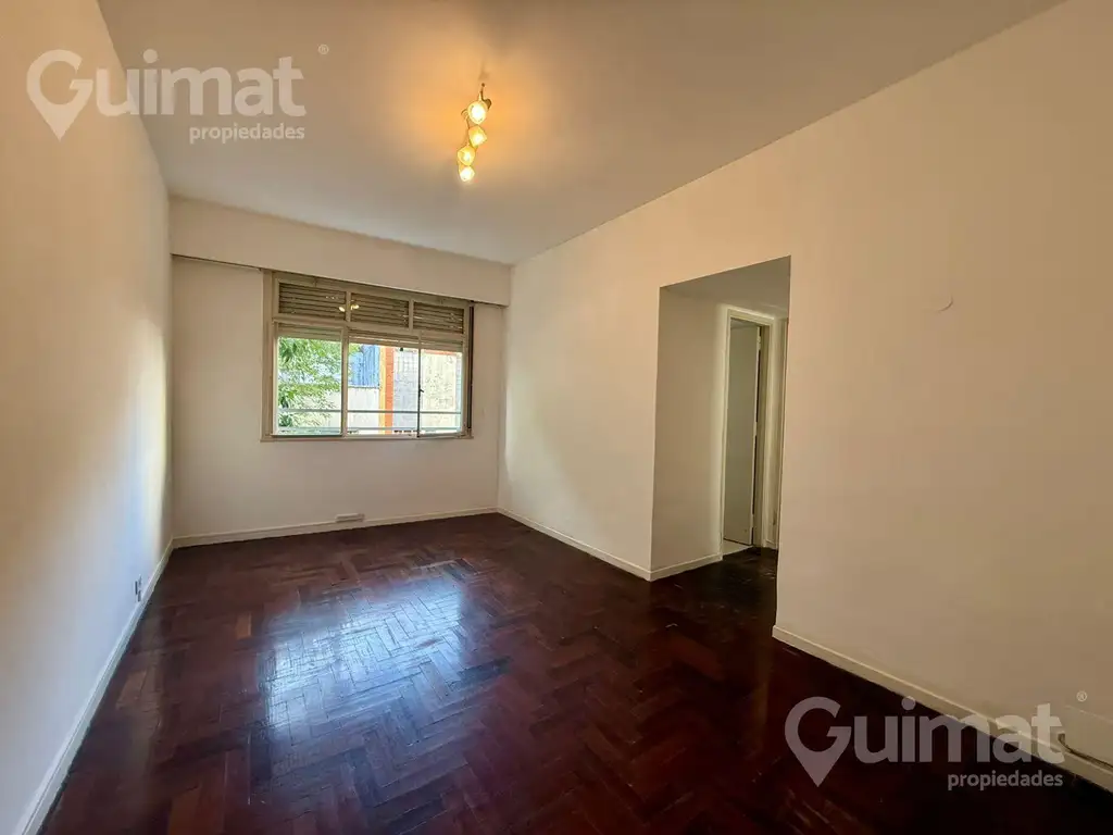 Cuenta con un amplio living comedor (3 x 5 m), con pisos de madera y grandes ventanales que brindan muy buena luz natural, equipados con persianas de madera.