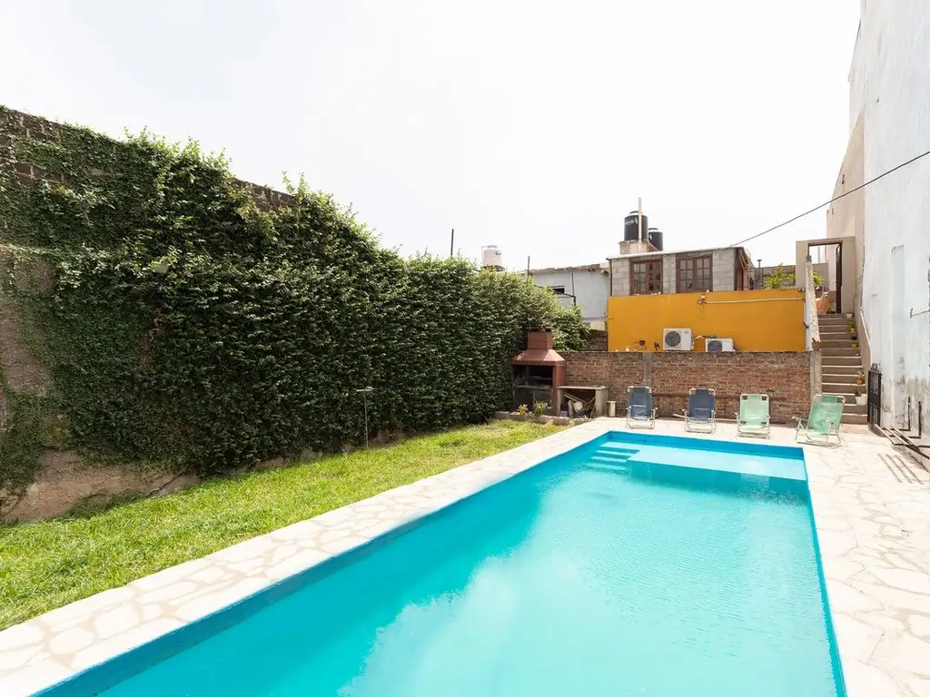 Lo mas destacado de esta esta propiedad se encuentra en su planta baja, donde se accede desde la terraza y se encuentra un fondo verde con pileta y parrilla.