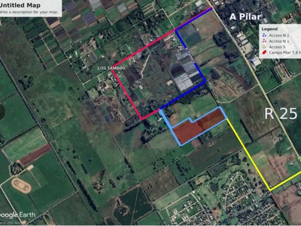 7,6 Hectáreas en Pilar, sobre Ruta 25, en colectora a 500m de la ruta, y a metros del barrio privado Boca Ratón.
