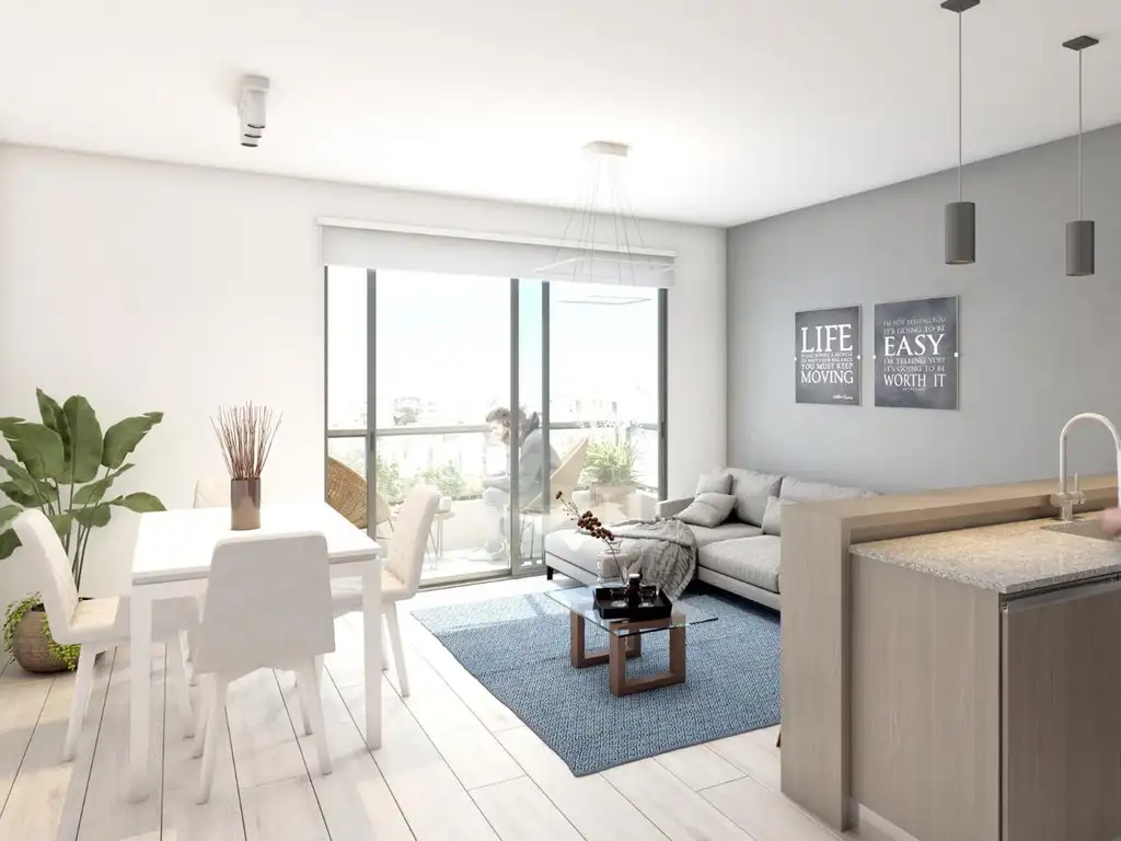 Departamento de dos ambientes, apto profesional, con balcón al frente, ingreso a amplio estar-comedor con cocina abierta integrada y toilette de recepción, dormitorio con vestidor y baño en suite completo con bañera. Todos los ambientes con salida a balcón.