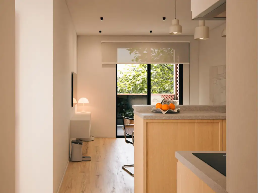 Cuentan con un dormitorio de generosas dimensiones, baño completo y toilette de recepción. La cocina integrada se conecta con un luminoso living-comedor que ofrece amplitud y comodidad.