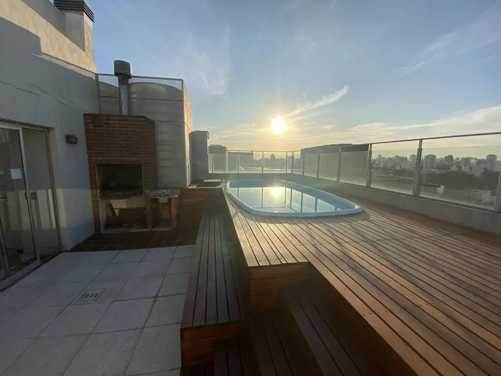 Edificio con pileta, parrilla y zoom con baño en la terraza,