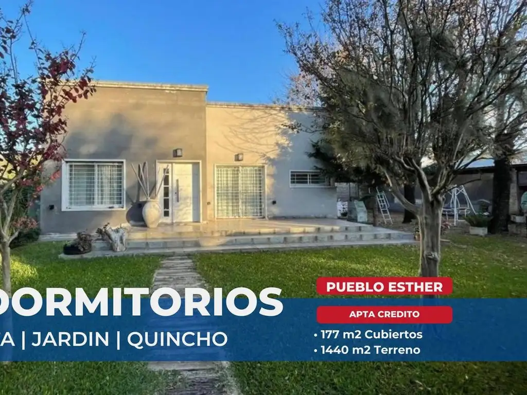 Propiedad de excelente construcción ubicada en zona residencial de Pueblo Esther, sobre calle E. Zeballos. Desarrollada en una superficie total de 1400 m² con 177 m² construidos, representa una inversión inmobiliaria de alto potencial para familias y profesionales que valoran espacios amplios y funcionales.