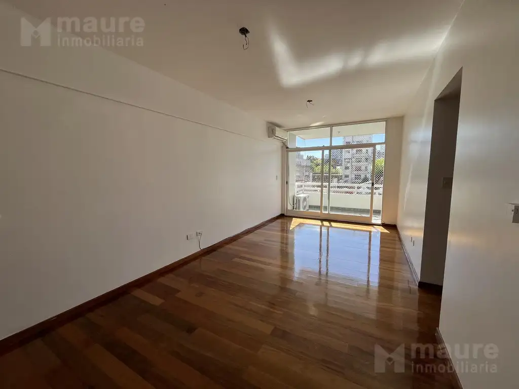 Contrafrente muy luminoso a pulmón de manzana con balcón y vista abierta.