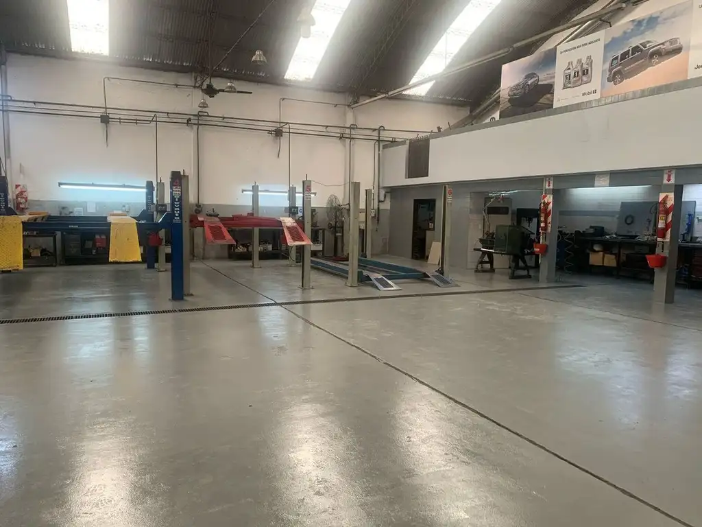 Galpón con techo parabólico, ingreso de camiones, portón automático , entrepiso y espacios de trabajo sectorizados.