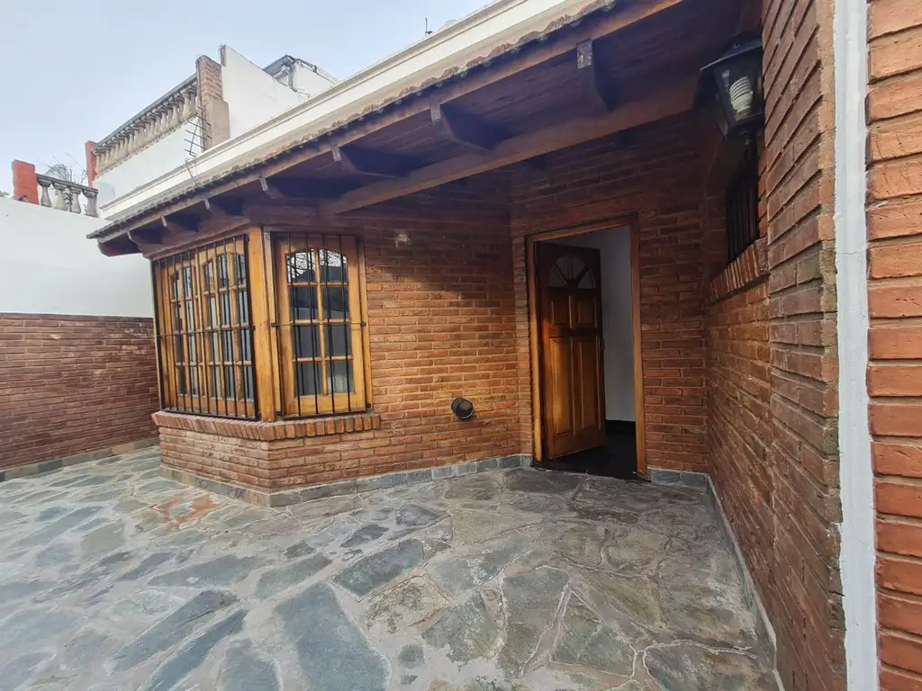Se accede a través del portón de la cochera cubierta. Después de la cochera se continua por un pasillo amplio y se accede a la casa. Cruzada la puerta principal, a la izquierda encontramos un hall recibidor amplio con gran ventanal que lo hace muy luminoso. El hall está conectado con un living también grande y a la izquierda del living tenemos acceso a un baño completo, con ducha. Desde el living accedemos a un dormitorio que es interno, tiene una ventana pequeña hacia el patio. Este dormitorio cuenta con placard que ocupa toda una pared. De aquí se pasa a otro dormitorio que cuenta con una ventana grande hacia el patio. Salimos del cuarto a un pasillo donde encontramos el segundo baño completo. En este caso, está dividido en baño y ante baño y cuenta con bañadera.