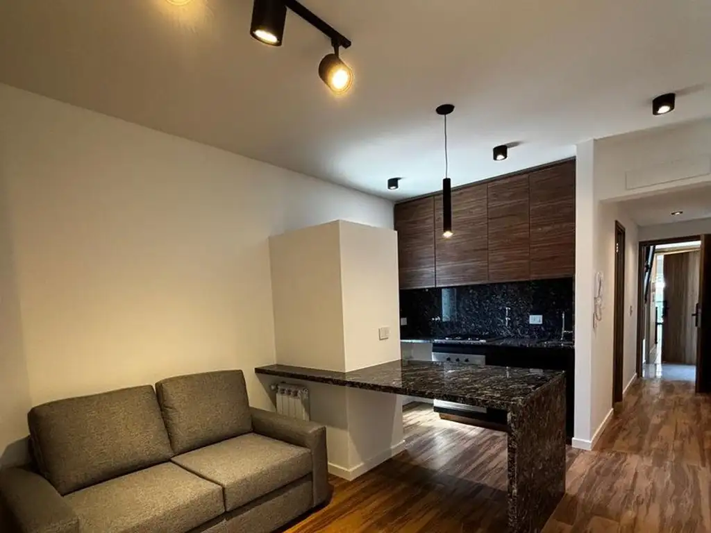 El ambiente integrado cocina completa con horno y anafe , sector de estar con desayunador, complementado por un baño completo y balcón con orientación a contrafrente. .- Sistema de calefaccion por Radiadores, cerradura magnetica, persiana electricas en todas las ventanas, aberturas de alumino con dvh, , pisos de porcelanato.-