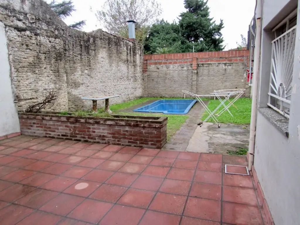 Propiedad tipo casa baja en zona residencial de casas bajas, a solo cuatrocientos metros de Avenida San Martín. Accedés por un amplio living luminoso; seguís a la cocina con comedor diario -todo práctico- y de ahí, directo a los dos dormitorios cómodos. Al fondo, el parque con pileta y un monoambiente independizado, ideal para oficina, huéspedes o el lugar para un gimnasio casero. Lote propio generoso: con la posibilidad de armar un edificio chico o emprendimiento rentable. Tranquila, familiar, lista para vivir o invertir.