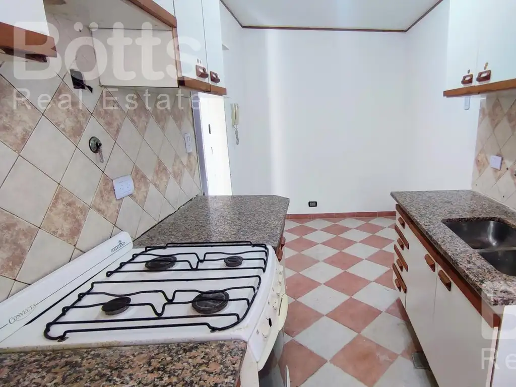 Al ingresar por el luminoso living comedor, encontramos a la izquierda una amplia cocina amoblada con espacio para mesa desayunadora, equipada con artefactos a gas y lavadero independiente.