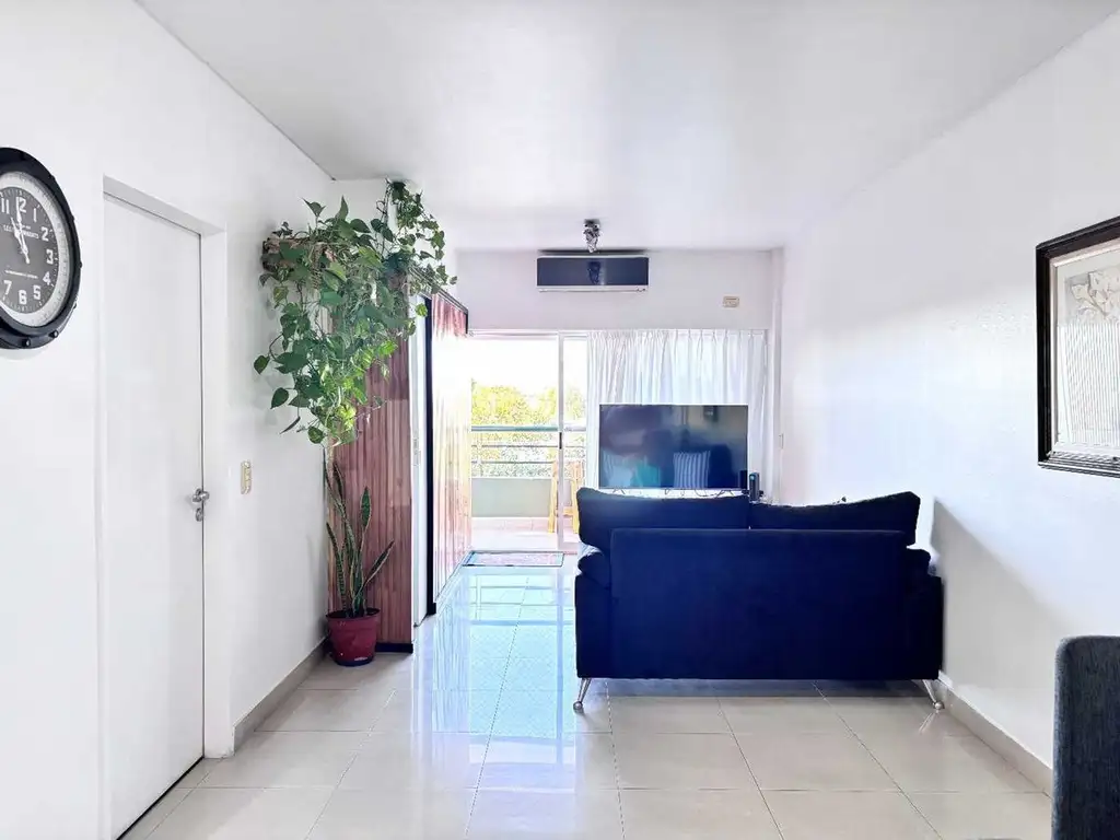 Al ingresar encontramos un amplio ambiente integrado donde se encuentra la cocina totalmente equipada con muebles bajo mesada, alacena y cocina eléctrica, cuenta admás con espacio para lavavajilla o lavarropas. El comedor que se conecta con el living, el cual cuenta con un gran ventanal con salida al balcón, brindando una excelente entrada de luz natural durante todo el día. El dormitorio posee placard empotrado y ventana al frente, asegurando luminosidad y ventilación. El baño completo con bañera, está revestido íntegramente en porcellanato pulido, al igual que los pisos de todo el departamento, aportando elegancia y fácil mantenimiento.