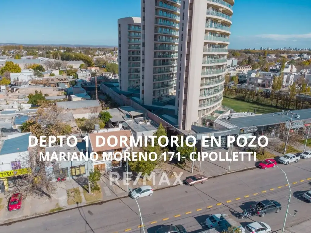 DEPARTAMENTO DE UN DORMITORIO EN POZO EN EL NUEVO EDIFICIO OGA DE CIPOLLETTI que se construye en Mariano Moreno 171.