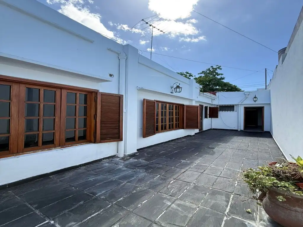 Al ingresar, nos recibe un living sumamente amplio, con potencial para ser dividido y generar distintos ambientes o salas de atención, dos dormitorios , baño completo ,toilette, cochera y una cómoda galería cubierta, perfecta para funcionar como hall de recepción o sala de espera que conecta a un patio interno que aporta luz y ventilacion natural y en la parte posterior se encuentra la cocina con ssalia a un patio con parrilla y lavadero.