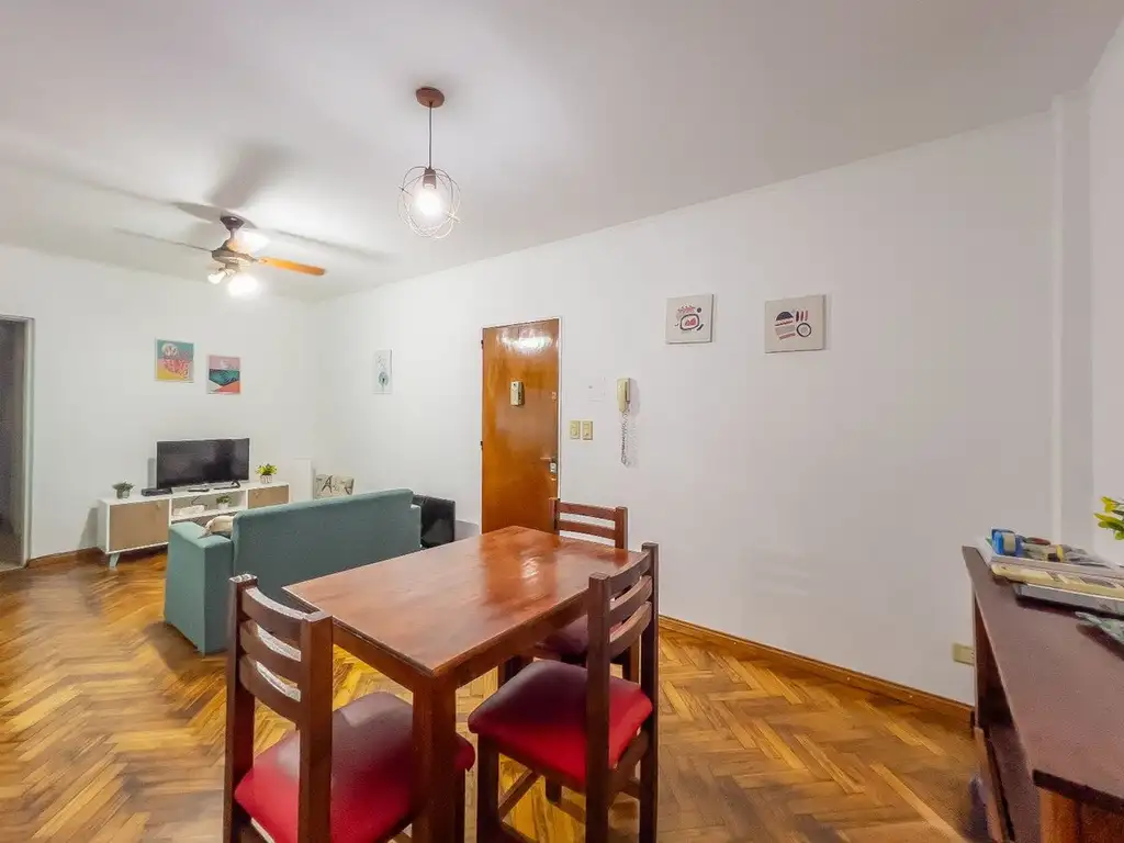 Al ingresar, el living-comedor se presenta como un espacio amplio y acogedor, ideal para disfrutar en familia o recibir visitas. La conexión abierta con la cocina semi-integrada al comedor hace que el lugar se sienta más amplio.