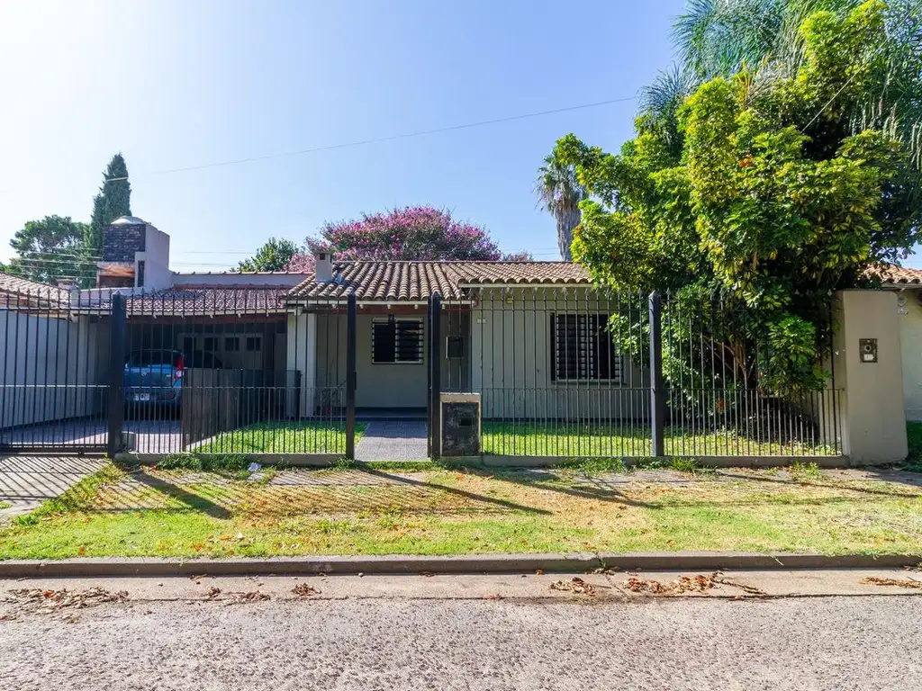 Dividiendo ambas propiedades, un amplio patio arbolado de 12x12mts, y parrilla.