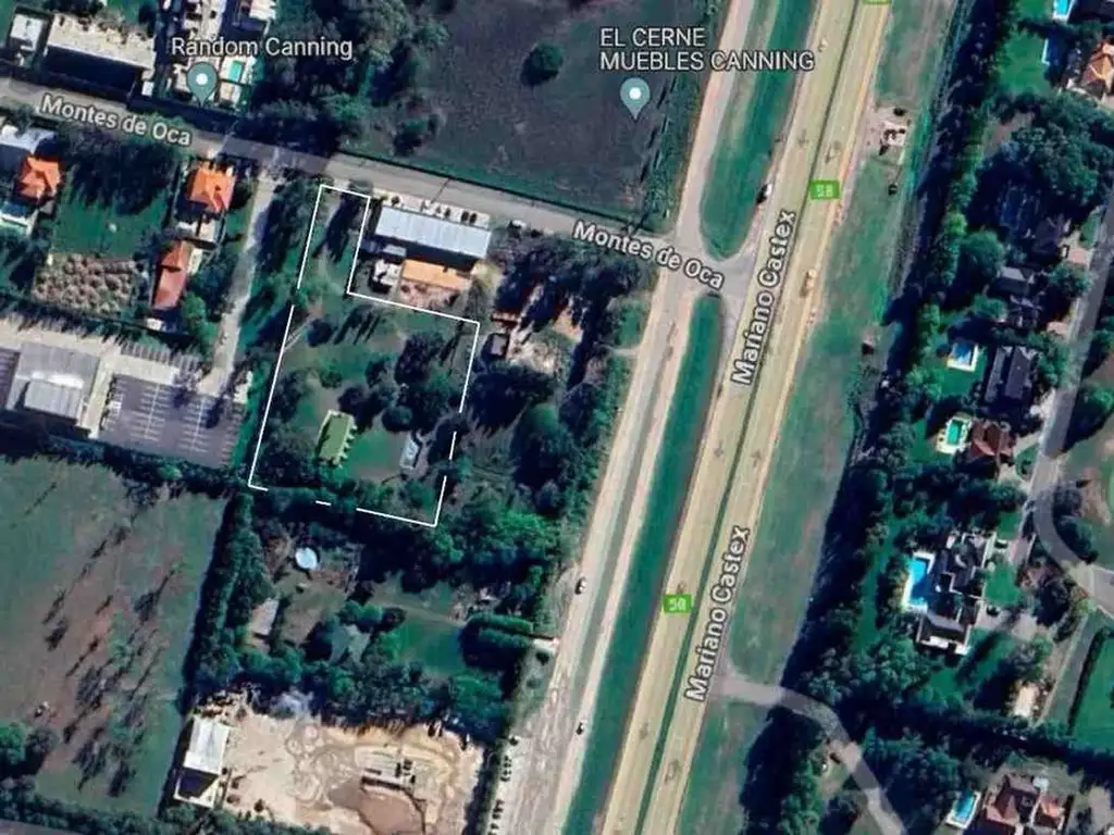 El terreno en venta se encuentra ubicado sobre la calle Montes de Oca, a menos de 50 metros de la Ruta 58 (Mariano Castex) y frente al barrio Saint Thomas, en Canning, provincia de Buenos Aires.