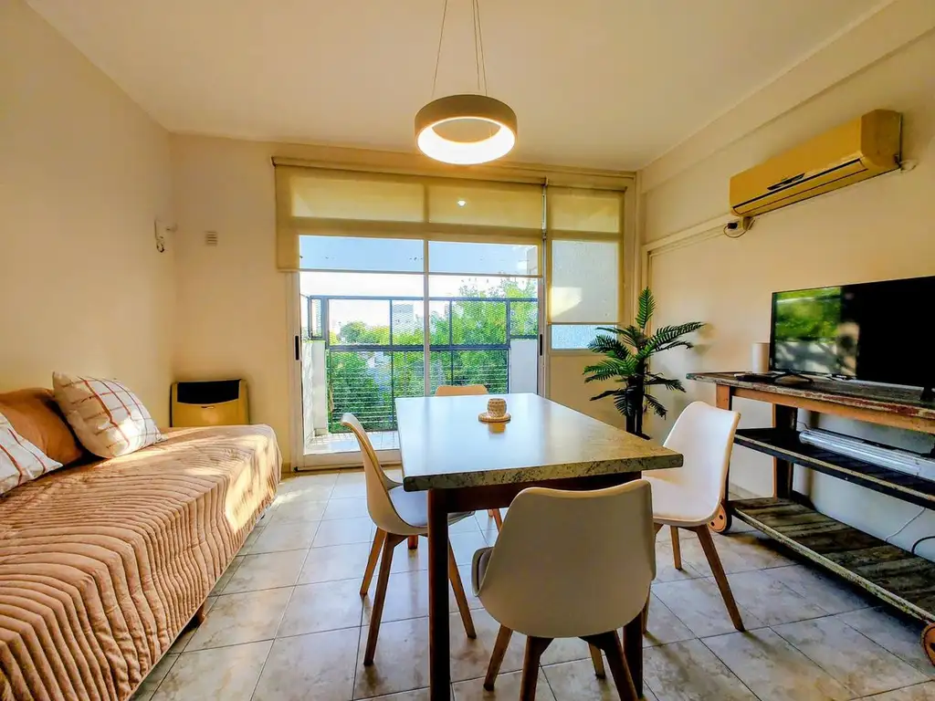 La unidad presenta una distribución funcional con dormitorio con vestidor y placard, living-comedor integrado, cocina semi integrada y baño completo. Cuenta con balcón al frente que amplía visualmente el espacio interior. Construido en 2010, mantiene un estado general excelente con terminaciones de primer nivel.