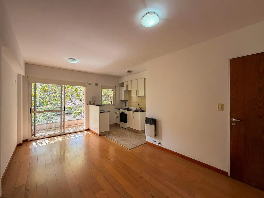 Ingreso a living-comedor con pisos de madera, cocina semi integrada, balcón al frente con lugar para lavarropas. Dormitorio al contrafrente, muy tranquilo y luminoso, equipado con aire acondicionado. Baño completo con bañera.