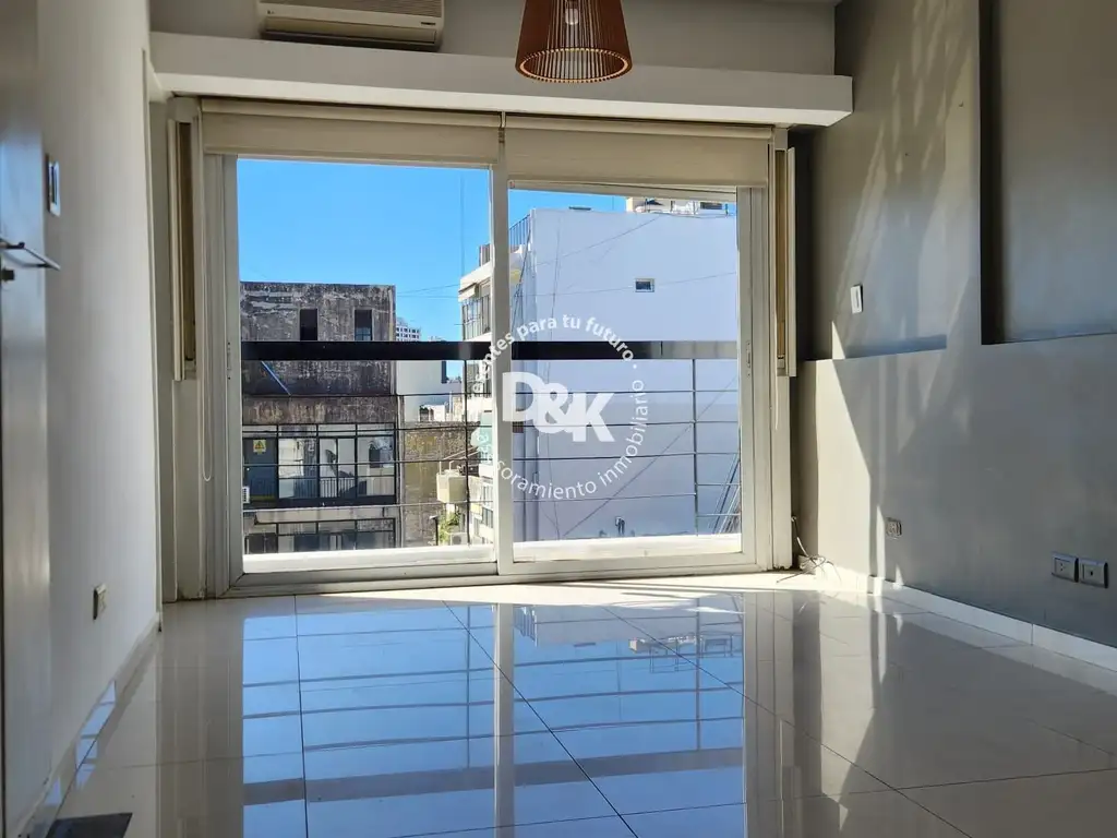 Living comedor con cocina americana, salida a pequeño balcon corrido y baño completo.