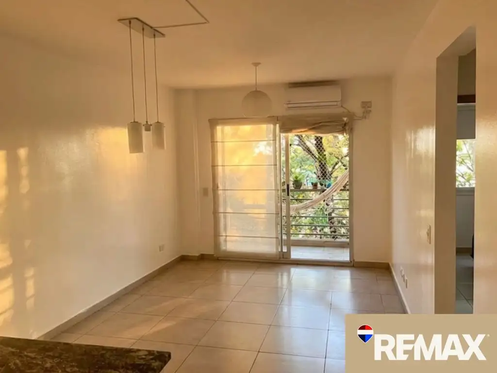 Living comedor con salida al balcón, cocina integrada, dormitorio y baño completo.
