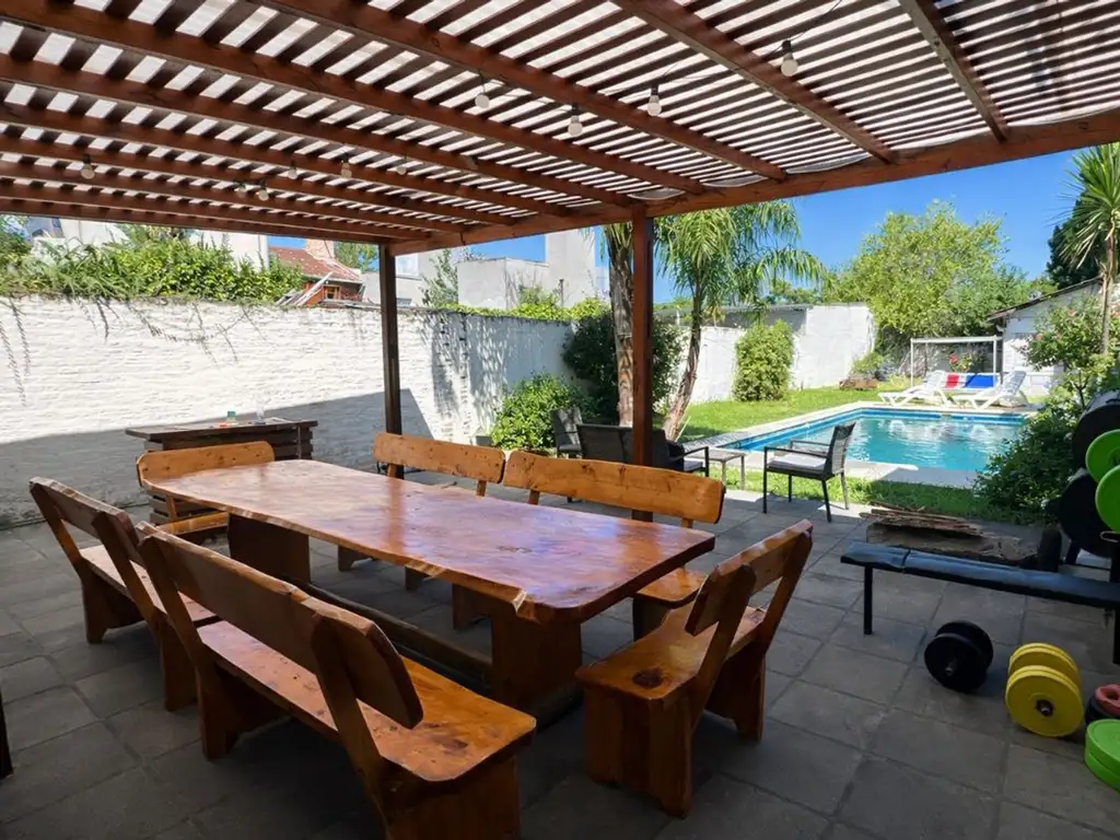 En el exterior se destaca un amplio jardín con pileta y quincho, ideal para disfrutar momentos al aire libre con familia y amigos. También posee entrada para auto, con posibilidad de ampliar a una segunda cochera.