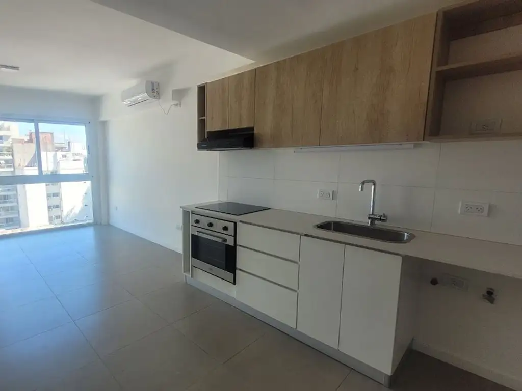 La unidad cuenta con 28 m² cubiertos y se encuentra en el octavo piso al contrafrente, lo que le brinda buena luminosidad y mayor tranquilidad. Forma parte de un edificio moderno construido en 2020, en excelente estado de mantenimiento.