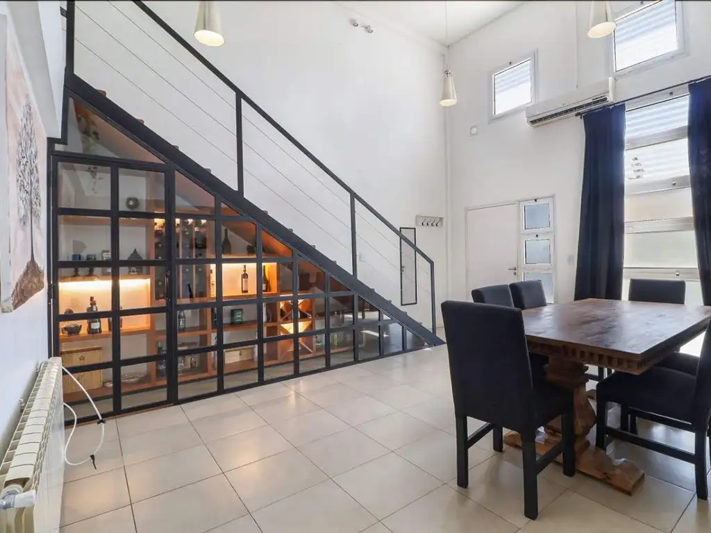 Área social: amplio living-comedor con chimenea a gas, ideal para crear ambientes cálidos y acogedores. Mueble a medida bajo escalera optimizado como vinoteca o biblioteca, aportando un toque de distinción único.