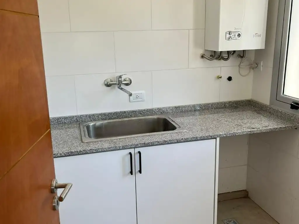 Se ingresa a un living comedor muy amplio, con su cocina integrada. Luminoso, ventanales con vista al parque. Toilette y lavadero independiente.