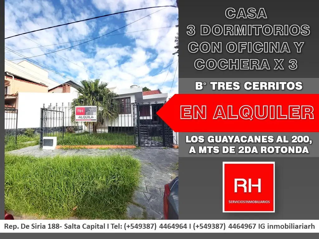 CASA 3 DORMITORIOS CON ESCRITORIO EN ALQUILER-B° TRES CERRITOS