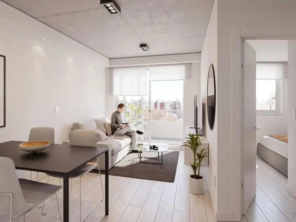 Departamento de un dormitorio con balcón al frente, diseñado para brindar comodidad, funcionalidad y excelente calidad constructiva. La unidad cuenta con un luminoso estar-comedor con salida a un amplio balcón, ideal para disfrutar del aire libre y la conexión con el entorno.
