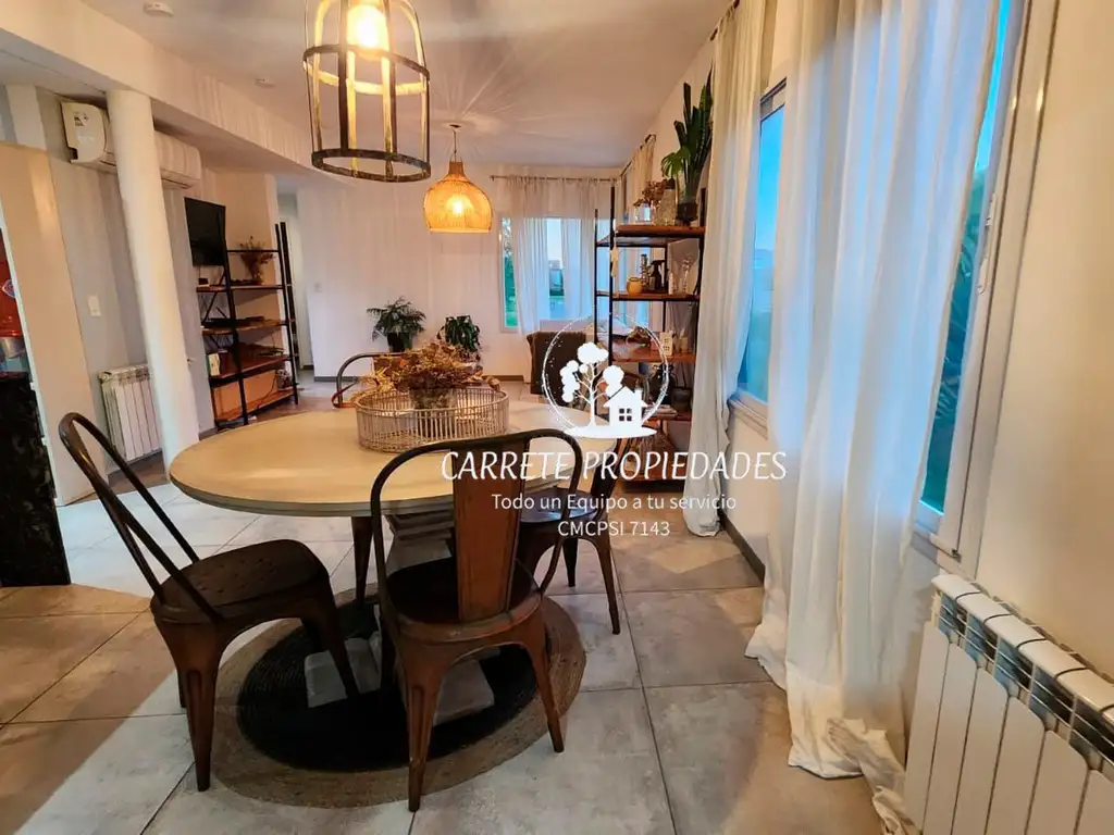 Planta Baja: Amplio living-comedor con ventanales que aportan luz natural, buena ventilación y conexión a la galería cerrada con estructura de hierro y vidrio, la cual brinda un ambiente adicional con acceso al sector de parrilla y lavadero.