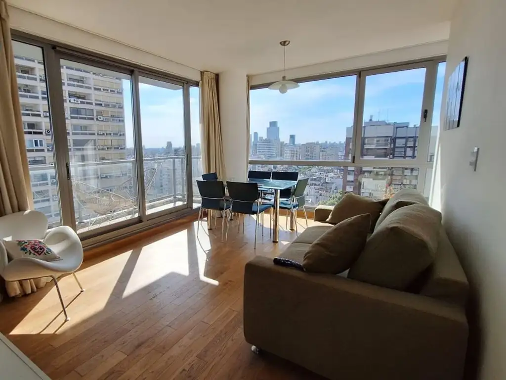 Lindísimo departamento de dos ambientes en la Torre Astor Palermo. La unidad se encuentra al frente en el décimo octavo piso, con una vista amplia de la ciudad.