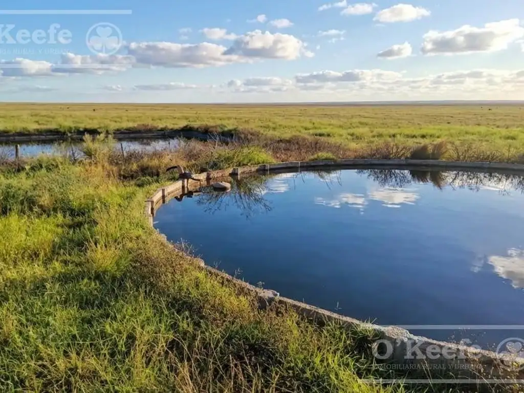 Oferta hidrica: El establecimiento cuenta con dos fuentes de agua para abastecer el recurso hídrico del campo, una que comprende el abastecimiento del acueducto del Oeste desde la Ruta Nacional N 3 y el segundo desde una perforación a 80 metros ubicada en el casco del predio que actualmente trabaja con bomba solar. Mediante ambas fuentes de oferta hídrica y por medio de la distribución de agua a través de más 18.000 metros de acueducto interno, estos sistemas abastecen todo el sistema pastoril. En su camino, estas fuentes de agua abastecen 4 reservas de agua: