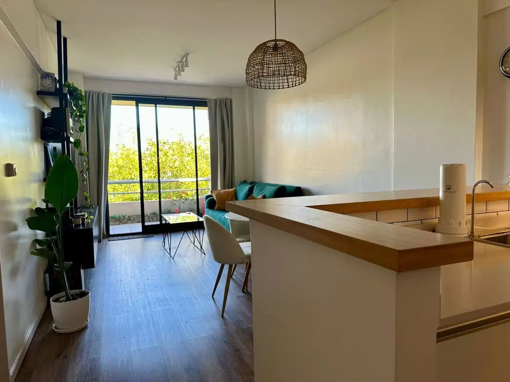 Amplio living comedor con salida al balcón y espacio para mesa con sillas.