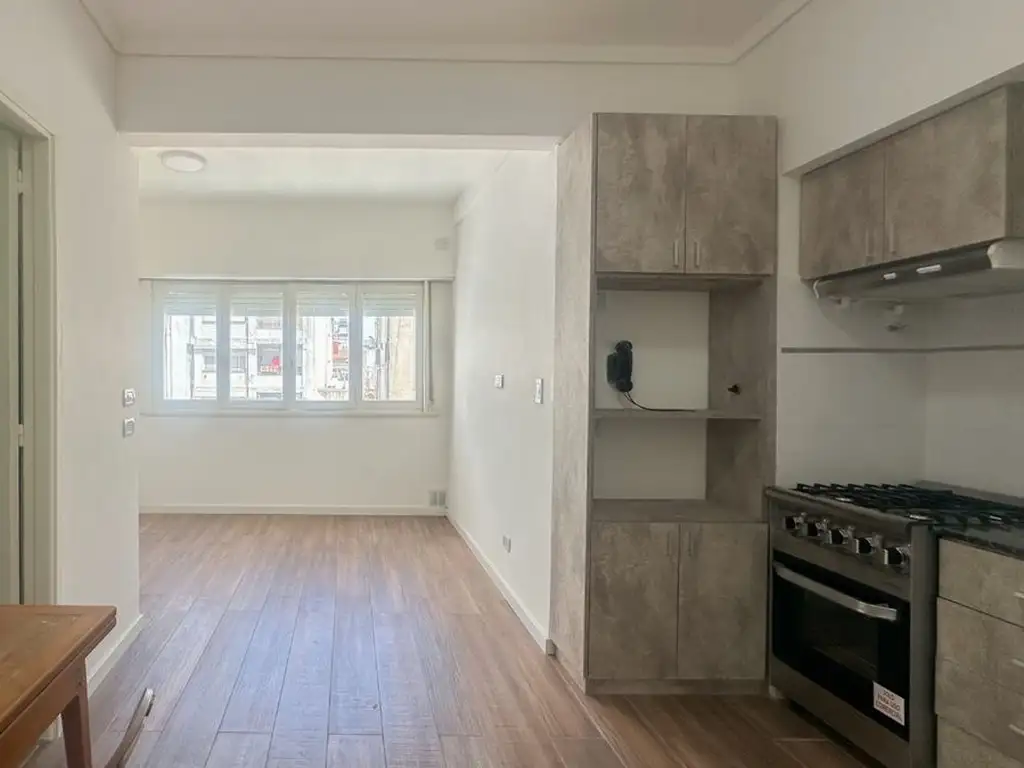 Hermoso monoambiente de 21 m² totales, ubicado en el 8° piso al contrafrente, con excelente luminosidad. El departamento cuenta con 1 ambiente moderno, totalmente reciclado, y una cocina integrada con un diseño de categoria. El baño tambien ha sido renovado. La obra de gas en el edificio ya fue realizada.