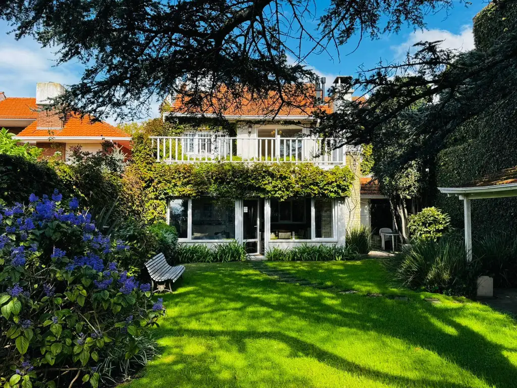 Cuenta con un jardín perimetral y con trotadora para un auto. Al ingresar nos encontramos con un amplio living comedor con hogar y con un toilette . Seguido una cocina amplia con doble mesada y un comedor diario con salida al parque al fondo. Posee un cuarto de guardado y un segundo baño.