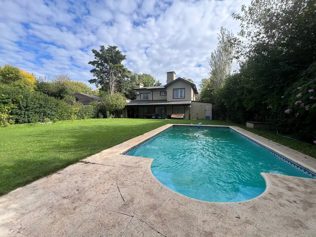 En el exterior, se encuentra una galería con parrilla, perfecta para reuniones, que se integra con un gran jardín parquizado y pileta.