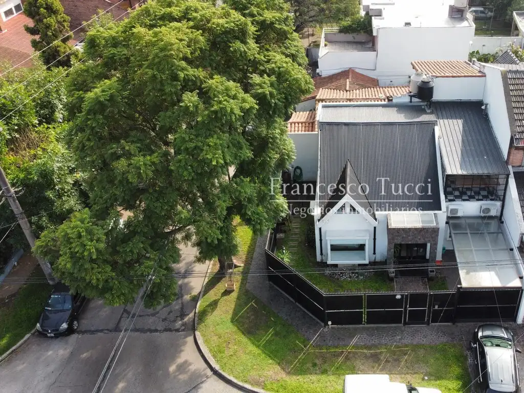 La casa se desarrolla en dos plantas y se destaca por su doble frente, lo que le aporta muy buena ventilación y luminosidad durante todo el día.