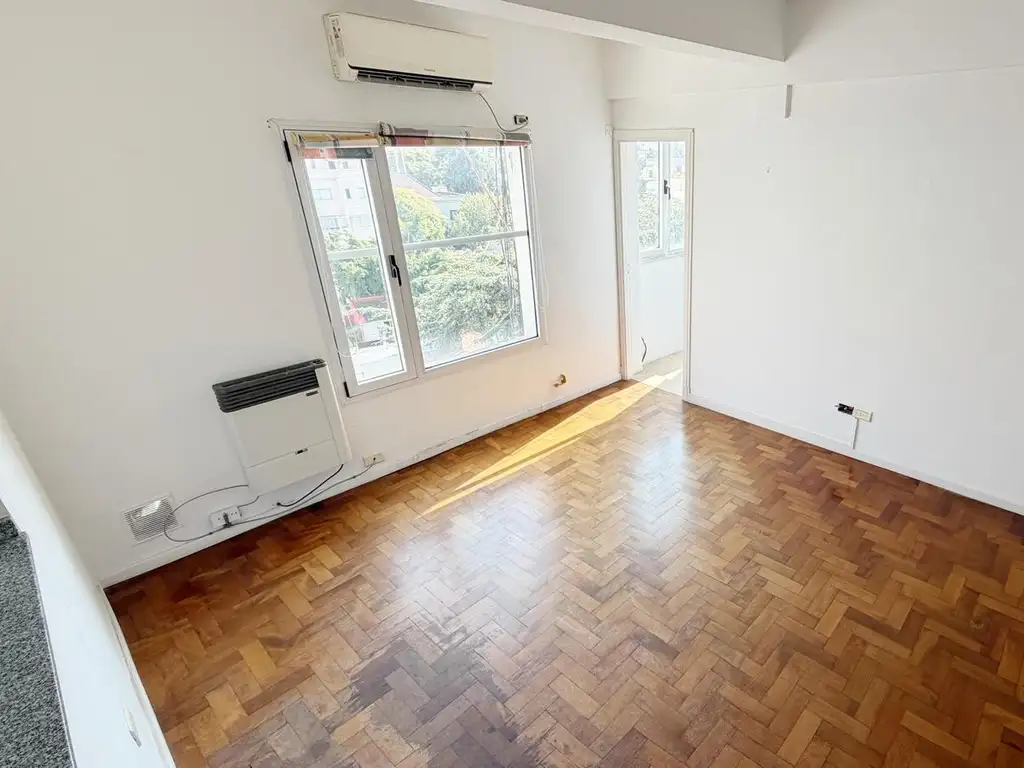 El departamento cuenta con pisos de parquet que aportan calidez, placard de recepción, baño completo con ducha y una habitación cómoda con placard. Además, dispone de un balcón cerrado que suma un espacio extra ideal para escritorio o área de trabajo, adaptándose perfectamente a nuevas dinámicas de vida.