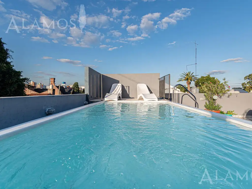 La terraza ofrece un excelente espacio exterior, con galería y sector ideal para armar un living al aire libre. Además, cuenta con pileta con sistema de filtrado automatizado (la terraza se entrega pintada).