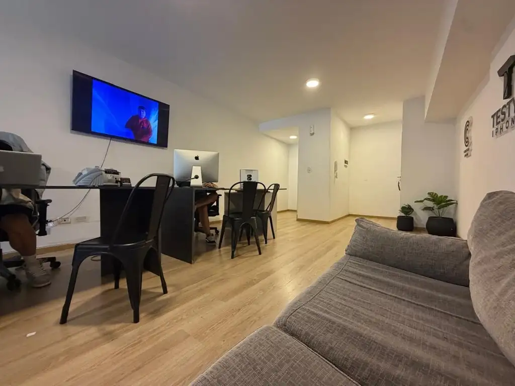 Actualmente este luminoso Monoambiente funciona como oficina. Puede ajustarse a vivienda y hacer una división para una habitación por los metros cuadrados que se acercan mas a un departamento de dos ambientes.