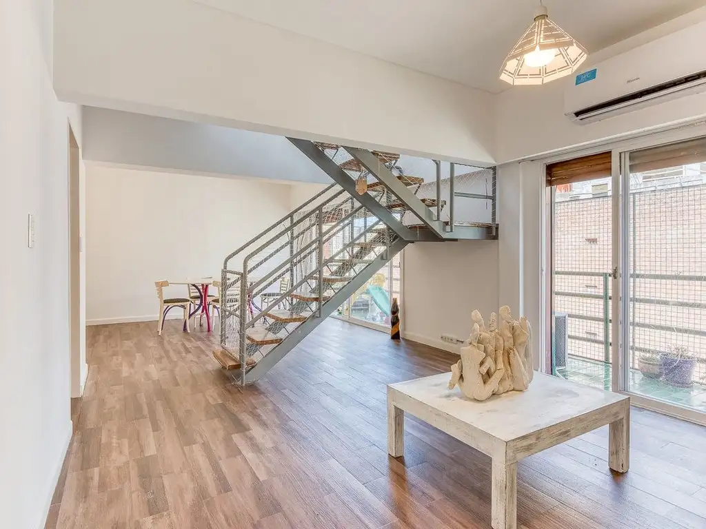 En el nivel superior, se encuentran los dos dormitorios, ambos de excelentes proporciones. El dormitorio principal se distingue por su luminosidad y un vestidor perfectamente resuelto. Un baño completo, compartido, ofrece terminaciones sobrias y actuales. Desde este piso se accede a una terraza de uso exclusivo, equipada con parrilla, ideal para momentos de relax, encuentros sociales o simplemente contemplar el cielo porteño desde un espacio íntimo y propio.