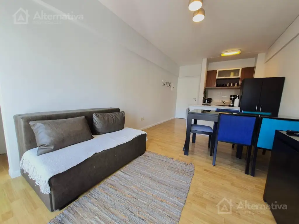Ofrece un luminoso living comedor con cocina integrada, dormitorio con balcón privado y baño completo.