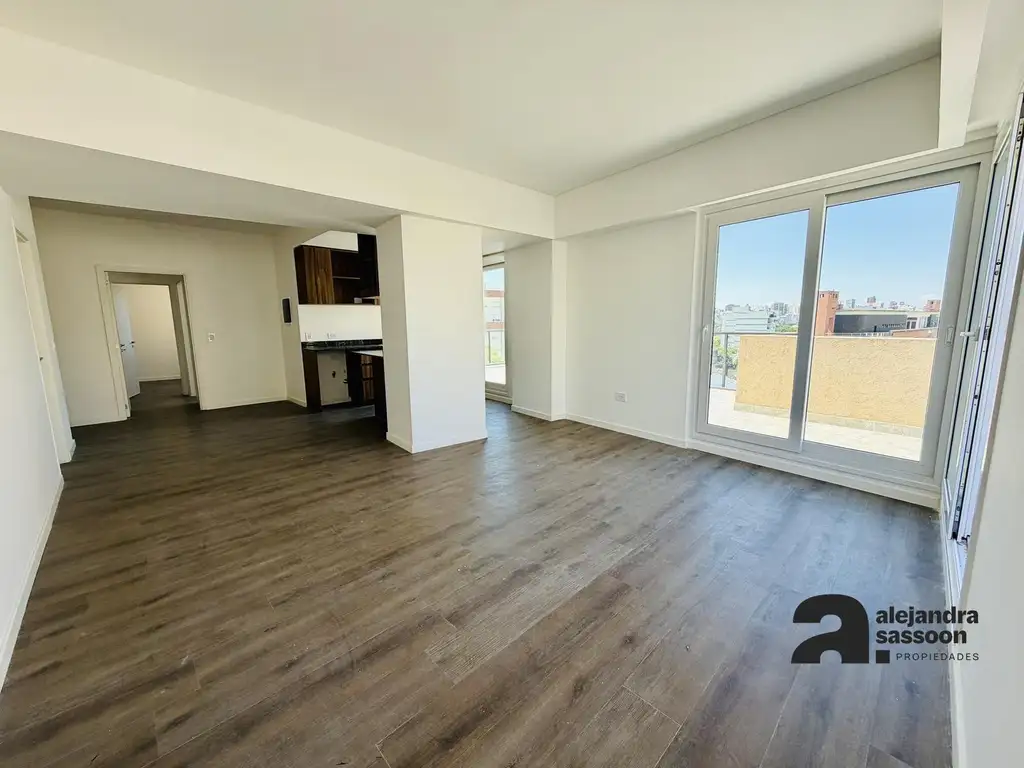 El living comedor con salida al balcón terraza en esquina, vista abierta y aire acondicionado Frio/calor ya instalado marca Samsung