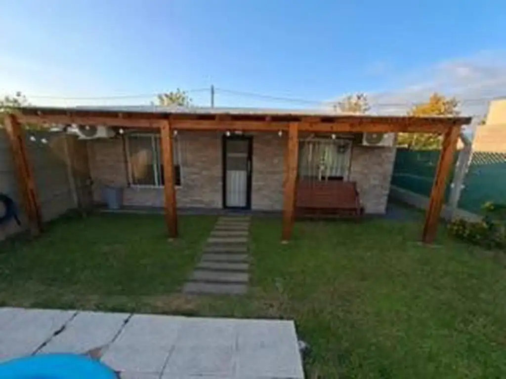 Exterior: Jardín con césped, pérgola de madera con techo de policarbonato e iluminación ambiental. Pileta de fibra de vidrio.