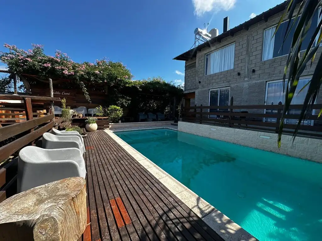 Habitaciones con vista serrana, baño, cocina, living comedor con salamandra Tromen. Quincho privado, asador y acceso directo a pileta. Sector de glorieta en múltiples niveles.