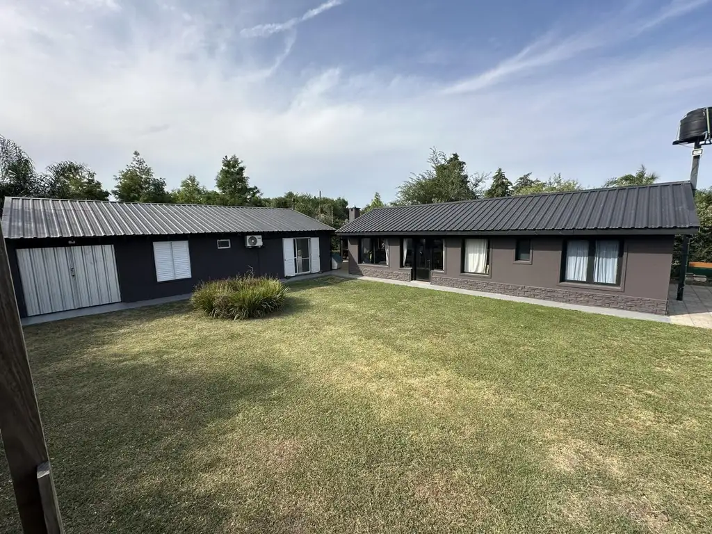 La vivienda principal cuenta con garaje, parrilla, parque, living con salamandra, cocina comedor, baño completo y tres habitaciones, ofreciendo ambientes cómodos y funcionales para toda la familia.