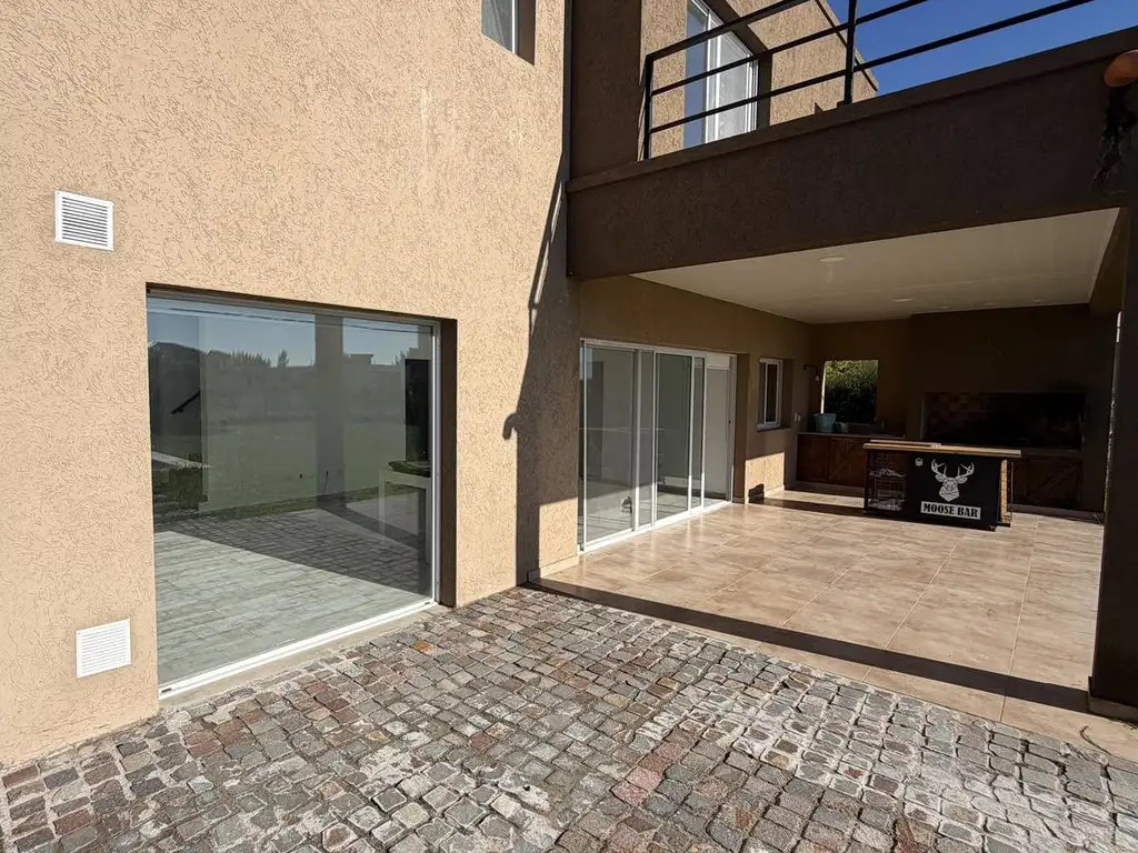 Living-comedor de gran amplitud con salida directa al jardín y pileta. Cocina equipada con isla central, mesada de granito negro, horno y campana de acero inoxidable. Escritorio independiente. Lavadero separado. Baño de visitas con diseño. Galería cubierta con parrilla y sink incorporado, perfecta para el entretenimiento al aire libre. Cochera cubierta para dos vehículos con acceso desde el interior.