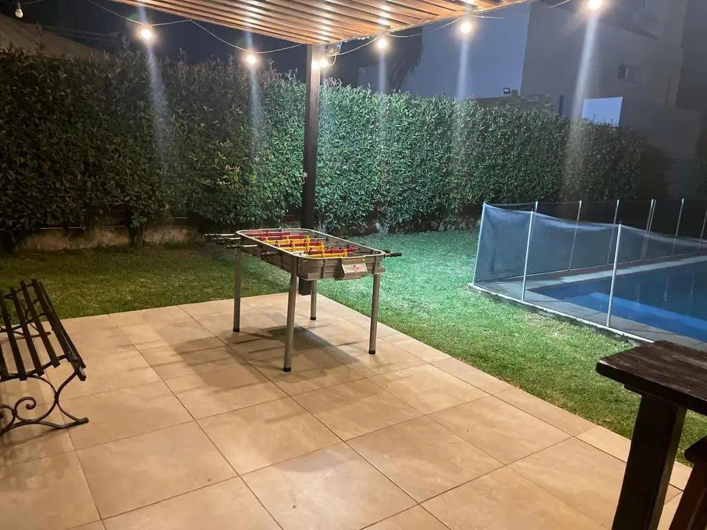 El exterior de la casa es perfecto para disfrutar del aire libre, con espacio suficiente para mascotas. La propiedad también incluye un quincho, ideal para reuniones familiares, y una piscina de 8x4 m para refrescarse en los días calurosos. Con al menos 3 espacios de estacionamiento descubiertos, el estacionamiento no será un problema.